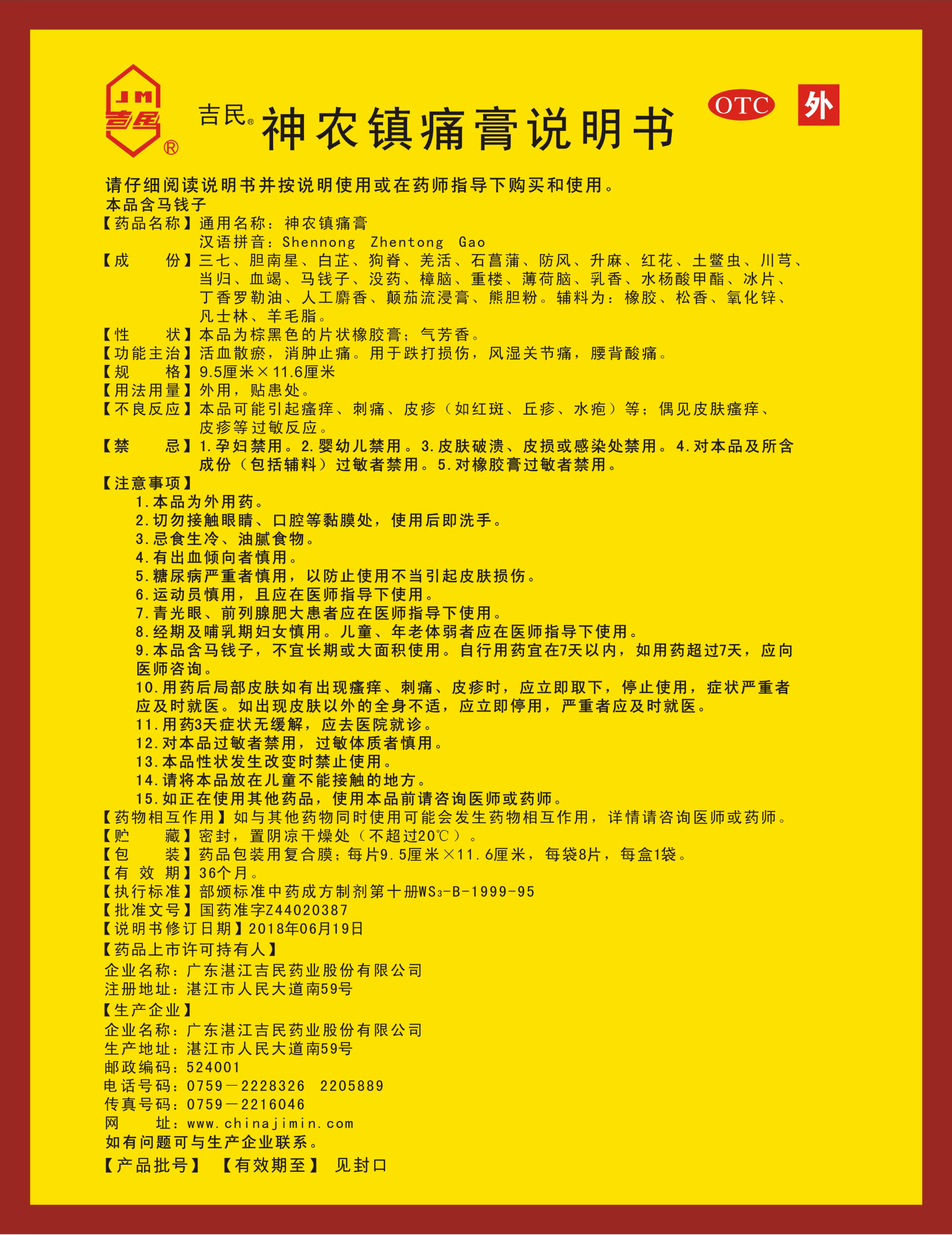 - 產(chǎn)品名稱 神農(nóng)鎮(zhèn)痛膏